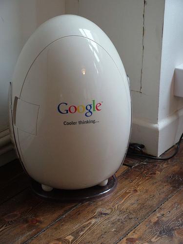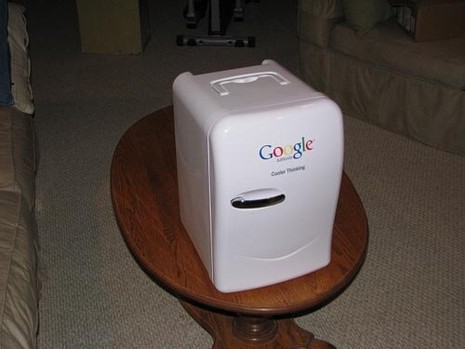 „Google“ šaldytuvas yra kiaušinio formos ir turi dvi šaldymo kameras. Jis efektingai atrodo ir be „Google“ užrašo. Griežtesnių formų šaldytuvas anksčiau net dalyvavo įvairiuose konkursuose.