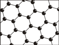 Grafenas sudarytas iš vieno atomo storio anglies atomų sluoksnio. Dalelės šios medžiagos struktūroje išdėstytos šešiakampe gardele, kuri iš pirmo žvilgsnio primena korio formą.