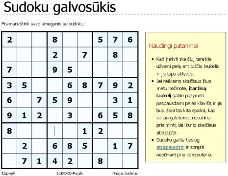 Benaršant toliau, aptikau kitą įdomų puslapį, skirtą populiariajam SUDOKU: