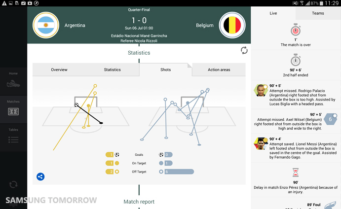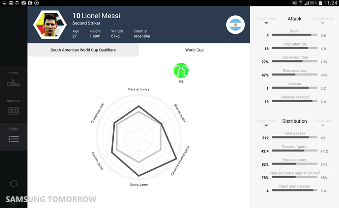 Programėlė veikia „Samsung“ planšetiniuose kompiuteriuose ir išmaniuosiuose telefonuose bei yra suderinama su „Samsung“ išmaniaisiais televizoriais. Sirgaliai turi galimybę perkelti statistinius duomenis ir informaciją apie žaidėjus iš savo „Samsung“ planšetinio kompiuterio ar išmaniojo telefono į „Samsung“ išmaniojo televizoriaus ekraną, taip sukurdami visiškai naują futbolo stebėjimo patirtį.